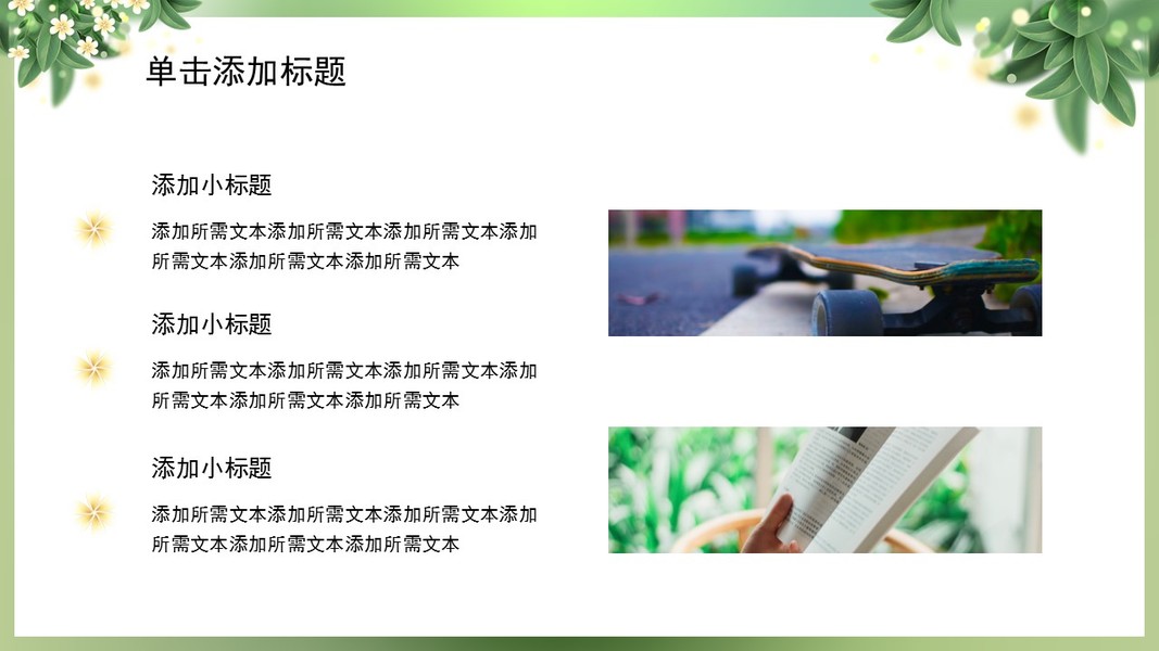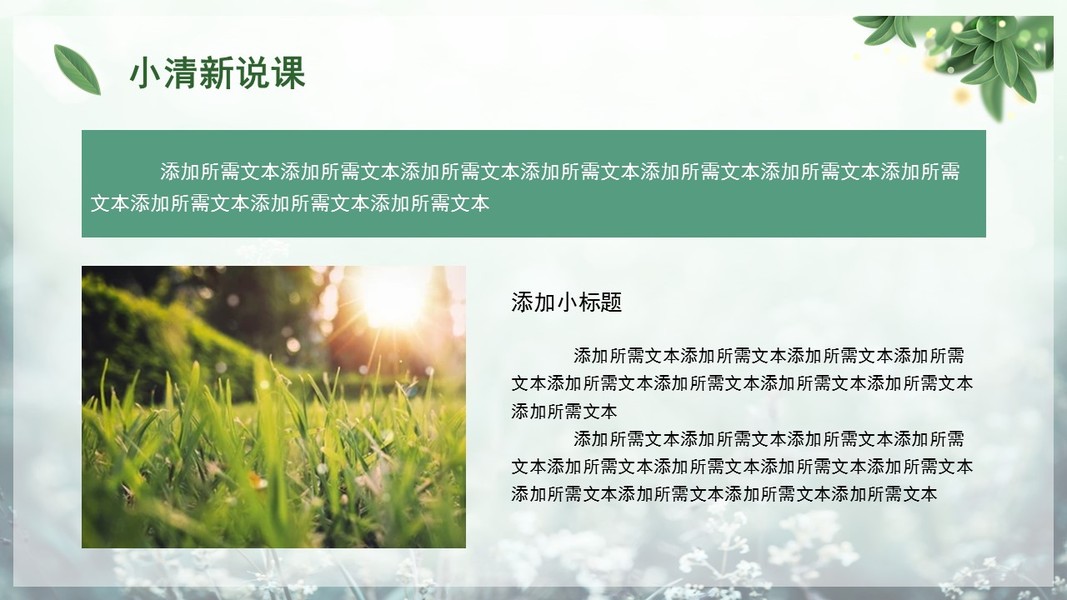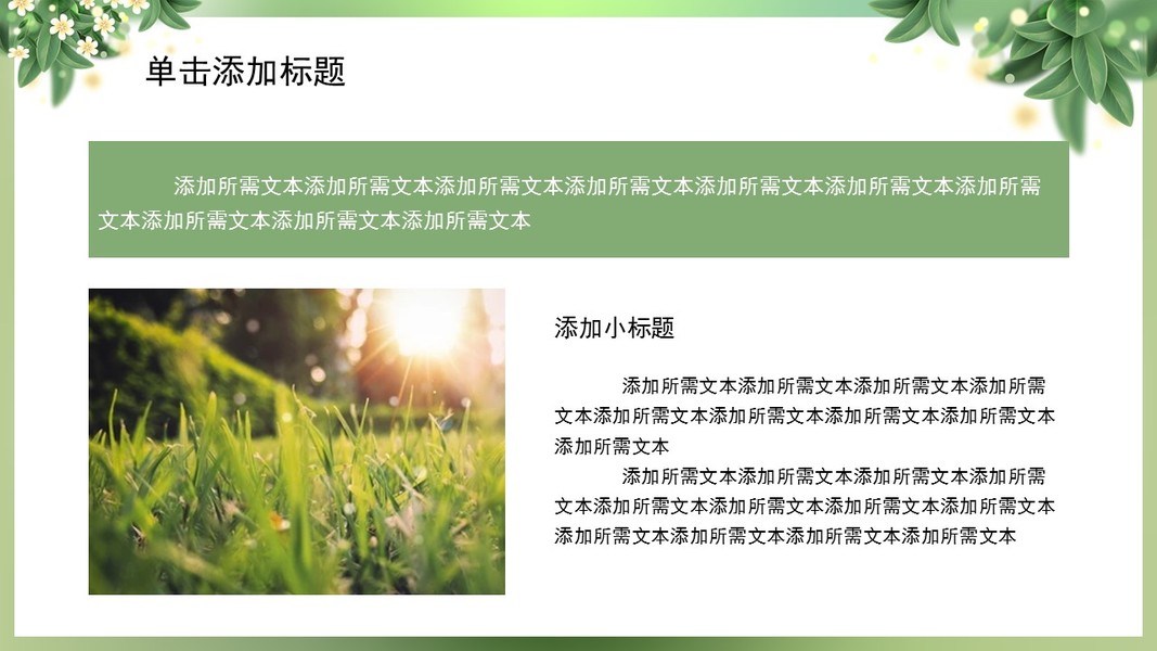文艺绿色小清新七月你好主题商务通用PPT模板