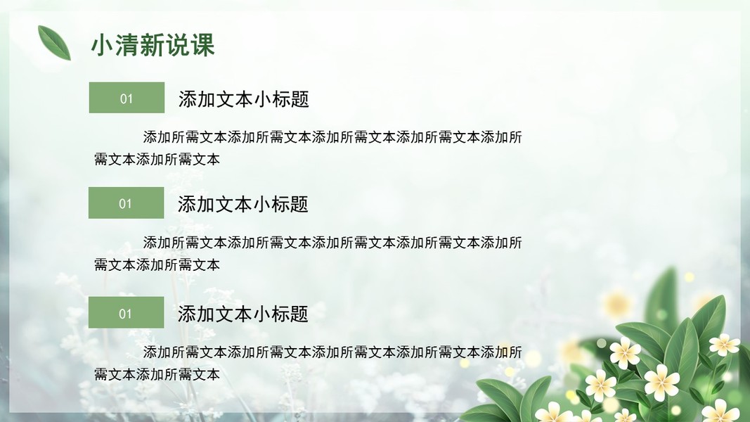 淡雅绿色小清新主题月季度述职报告PPT模板