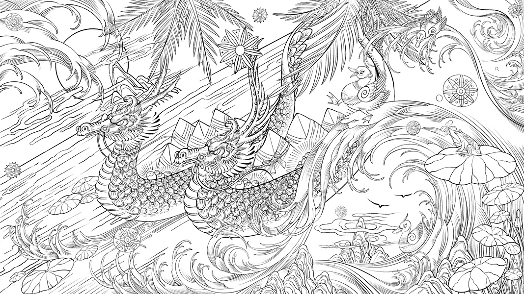 2023端午节礼盒包装插画/粽享端午/遇龙