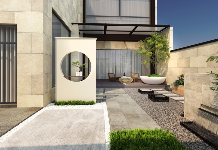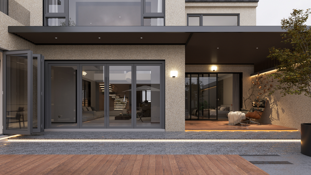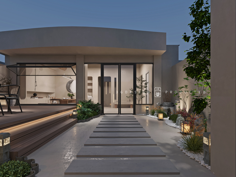 第五十八期keyshot户外别墅场景源文件游泳池庭院场景