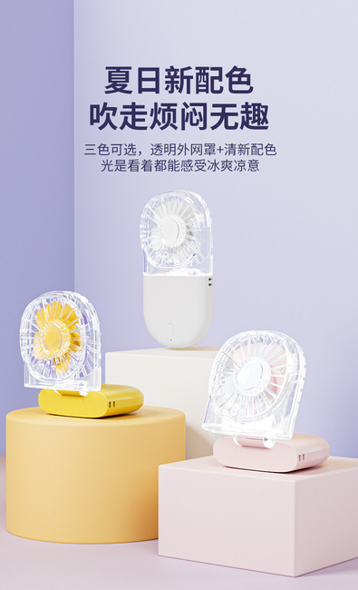 透明折叠迷你户外挂脖小风扇便携USB充电手持电风扇