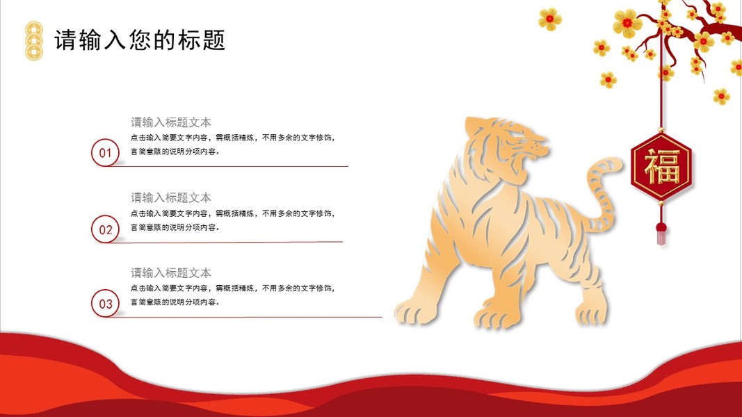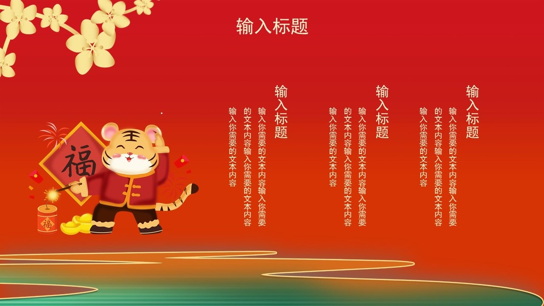 虎年大吉新春快乐商务通用工作总结PPT模板