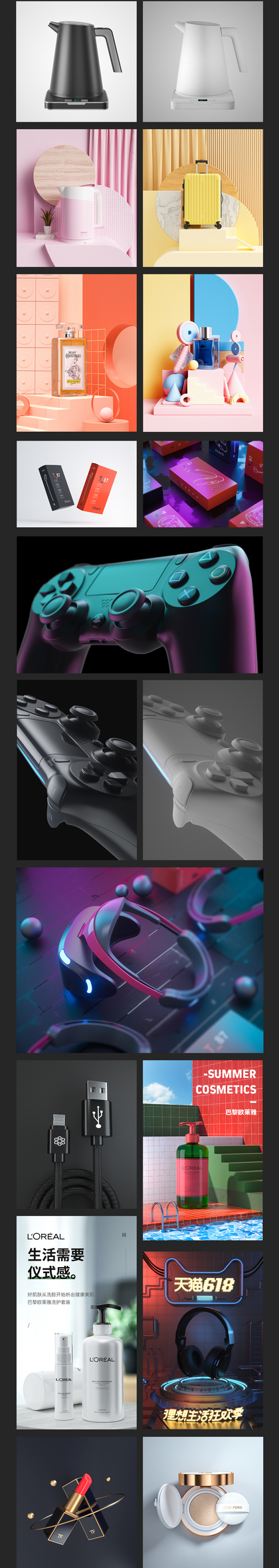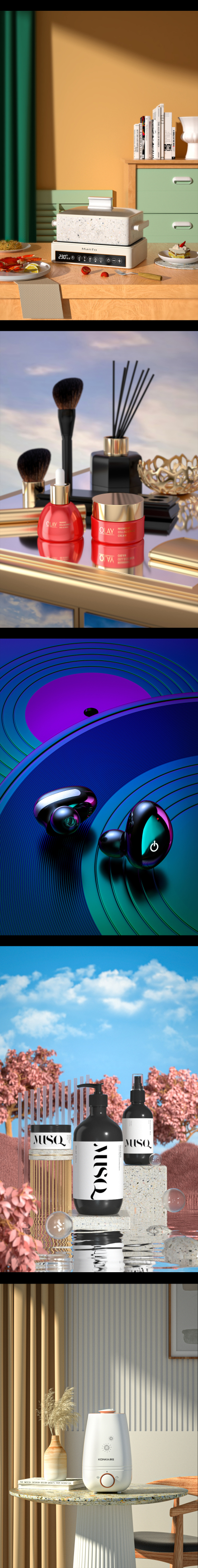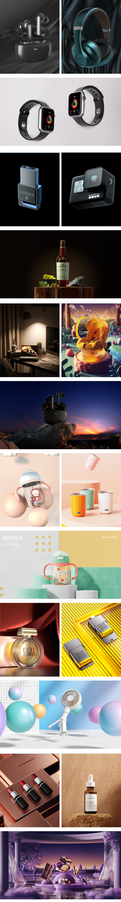 产品渲染作品集(下)·3C·化妆品·暗调·超写实场景