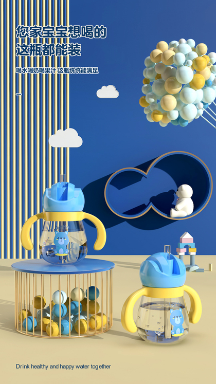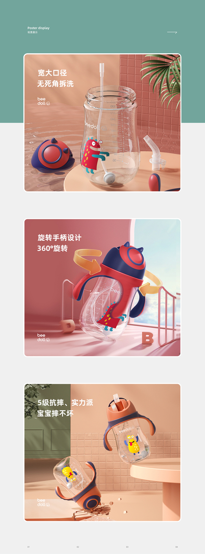 母婴奶瓶品牌详情页设计-产品建模渲染X2