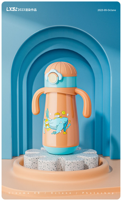 儿童指纹锁保温杯C4D建模渲染电商详情页