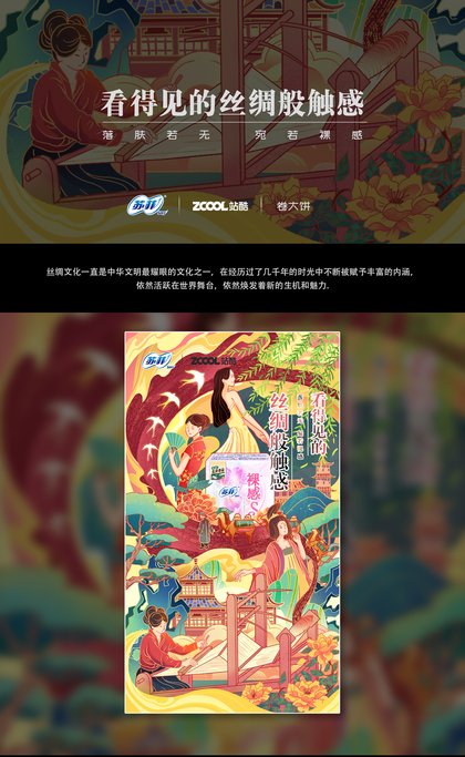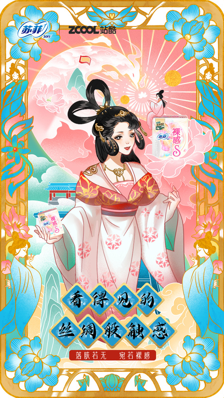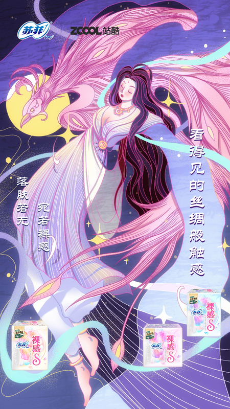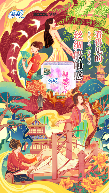 【看得见的丝绸般触感】-苏菲裸感S卫生巾国风海报设计