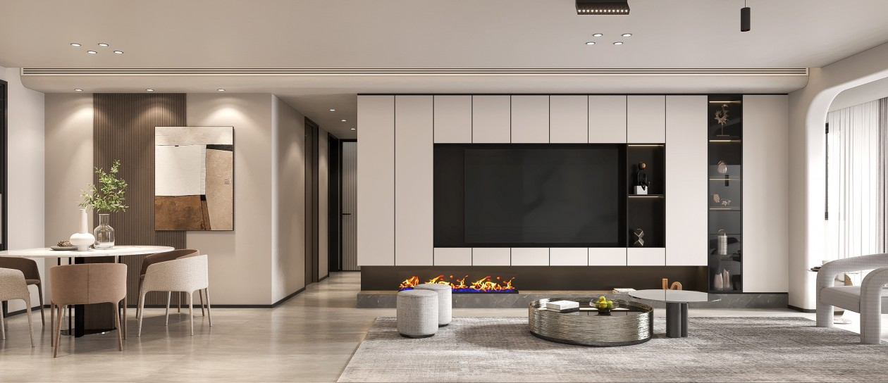 现代轻奢风格客餐厅效果图设计