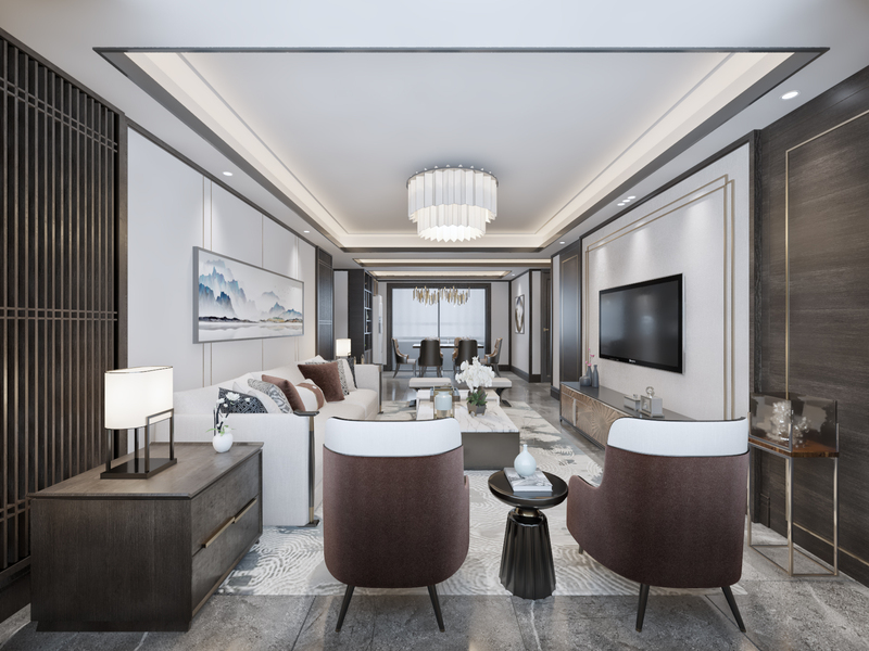 新中式风格客餐厅效果图设计