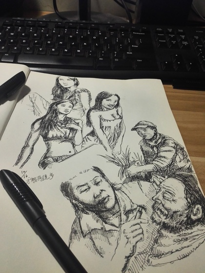 最近这一周的练习,目标想画一副大尺寸的钢笔画。