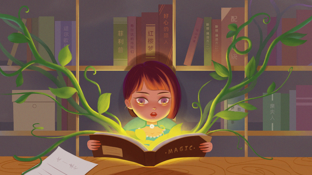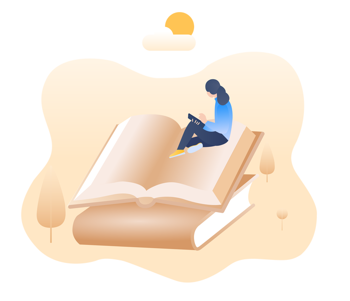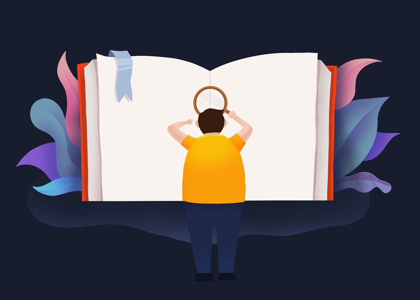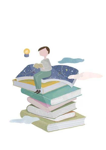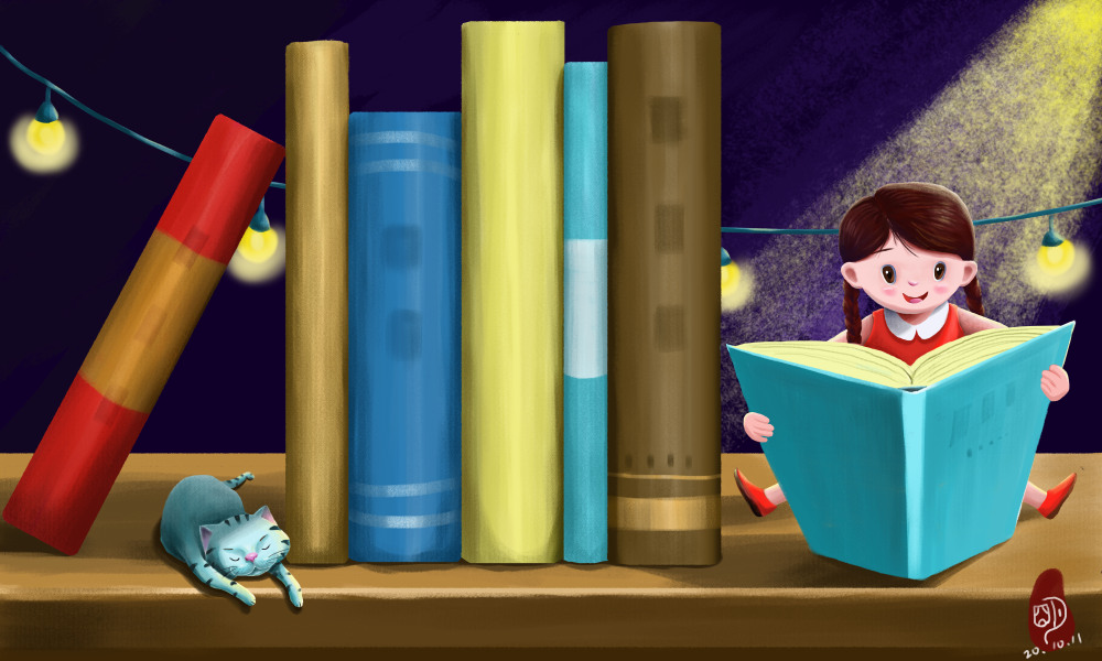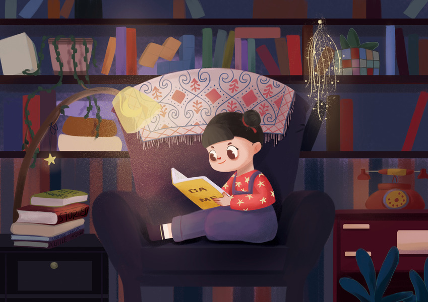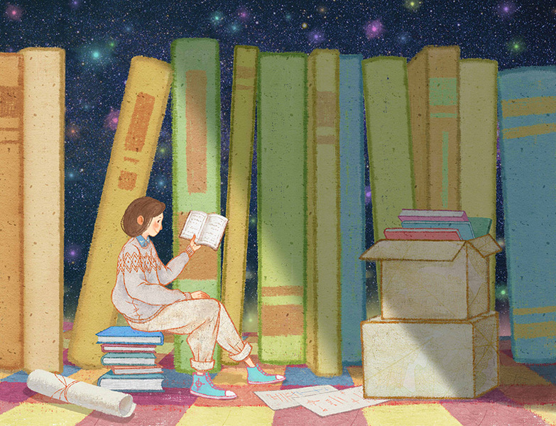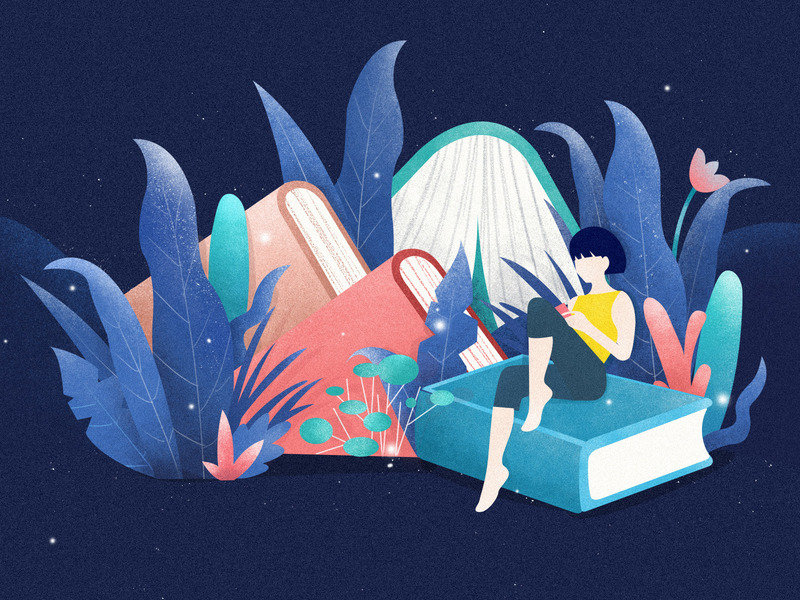 「小洋丁插画」红蓝风格插画分享-阅读场景