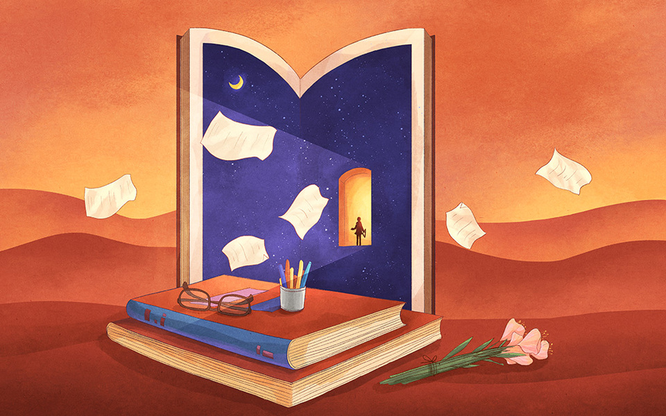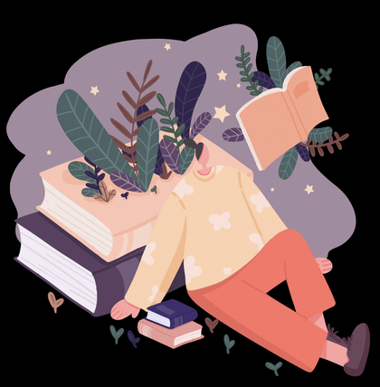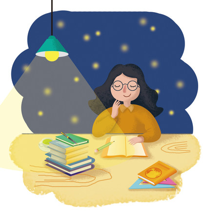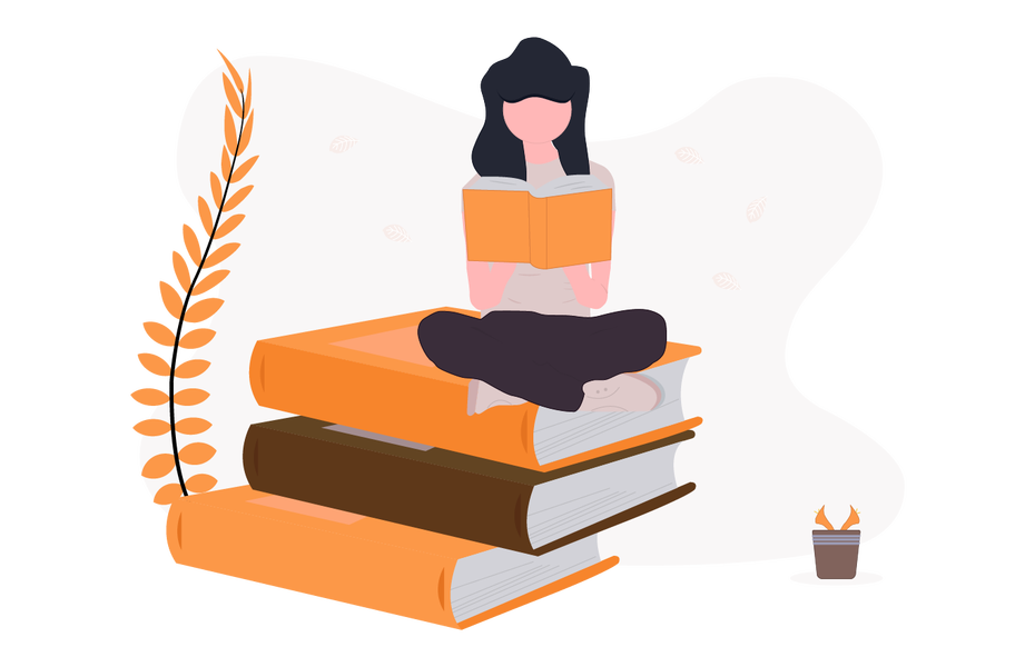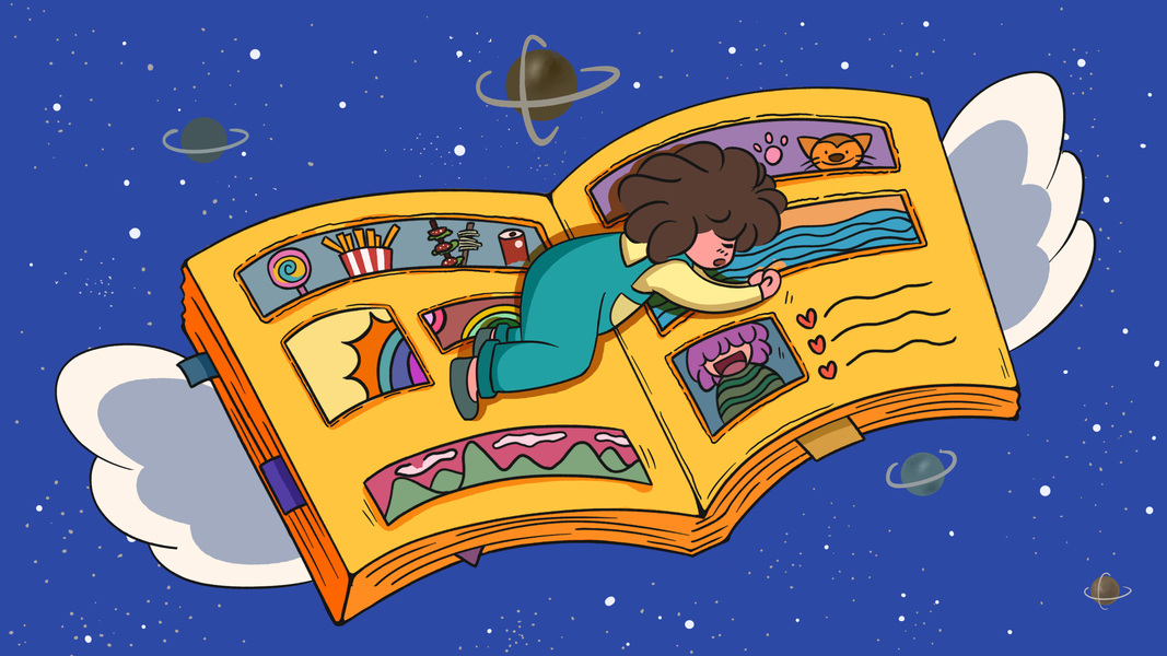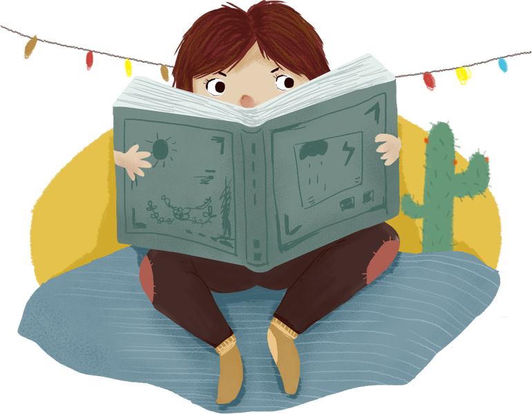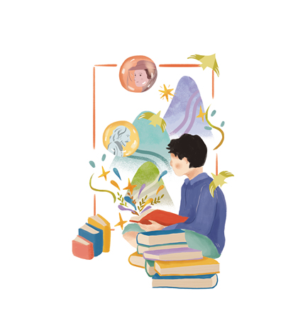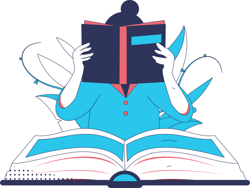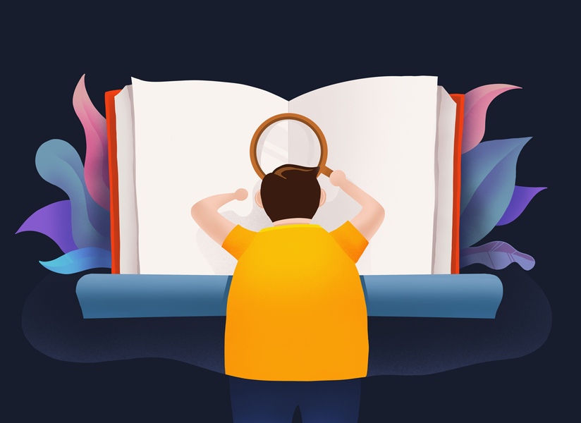 「小洋丁插画」红蓝风格插画分享-阅读场景