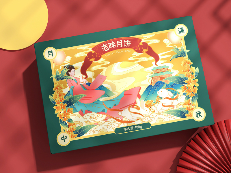 中秋节月饼礼盒包装插画设计