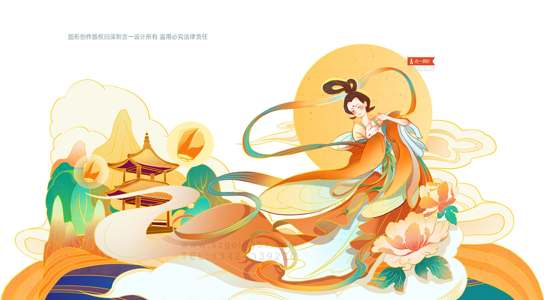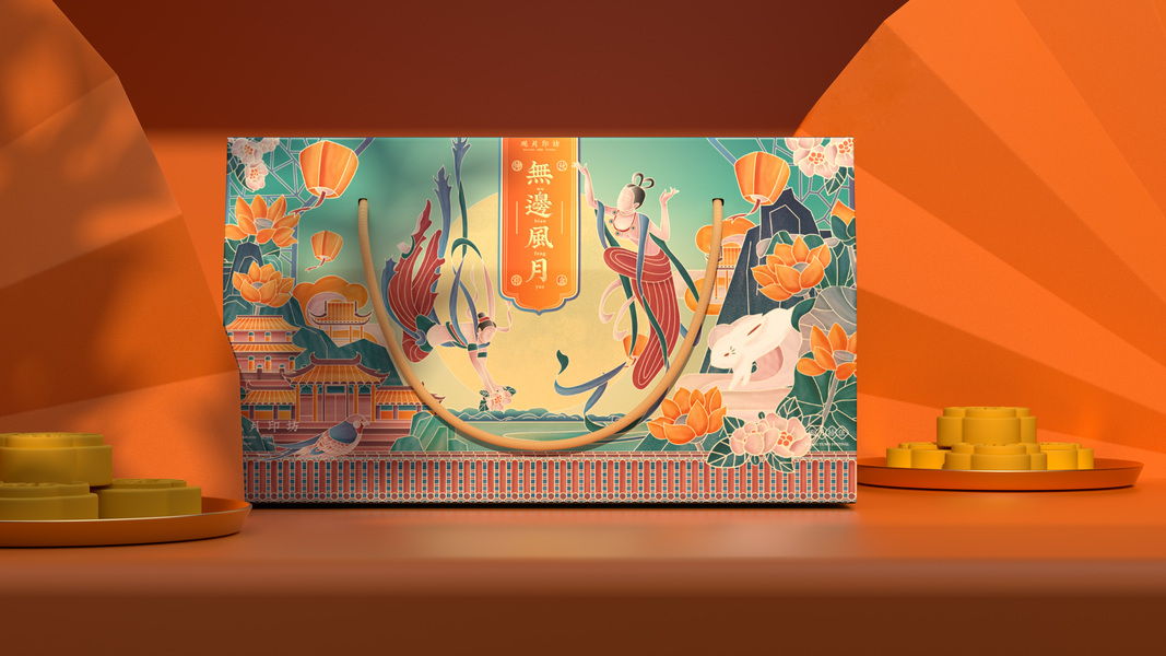 2021中秋月饼礼盒·嫦娥奔月·原创插画包装设计