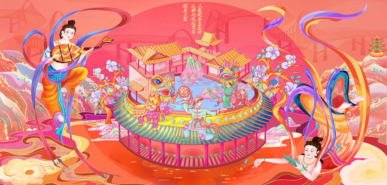 【吉祥如意迎新春—2023春节系列贺图.插画长卷】
