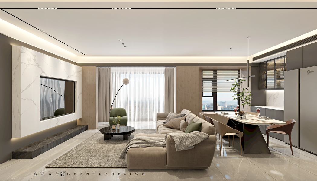 90空间设计∣130㎡温馨现代风,长阳台设计太惬意了~