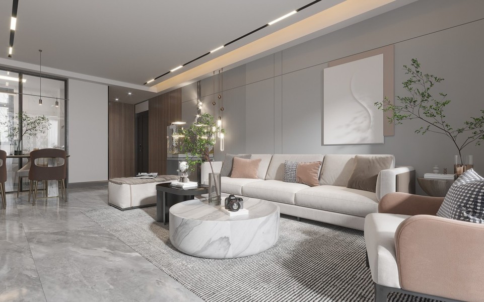 昆明木菲美家4S店:华夏四季3室2厅轻奢风格效果图