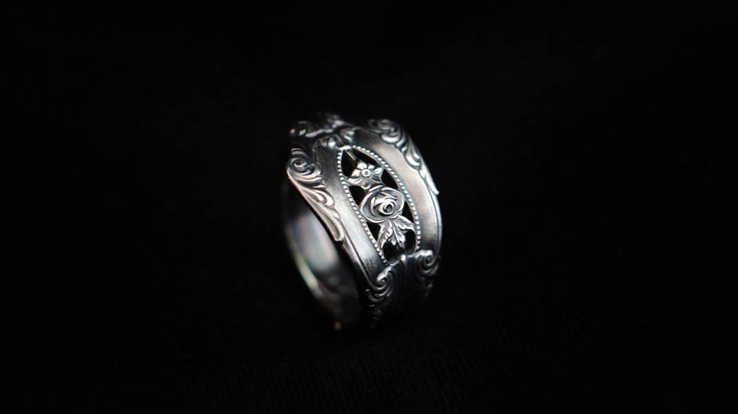 【马里兰玫瑰繁花古董银勺戒指】