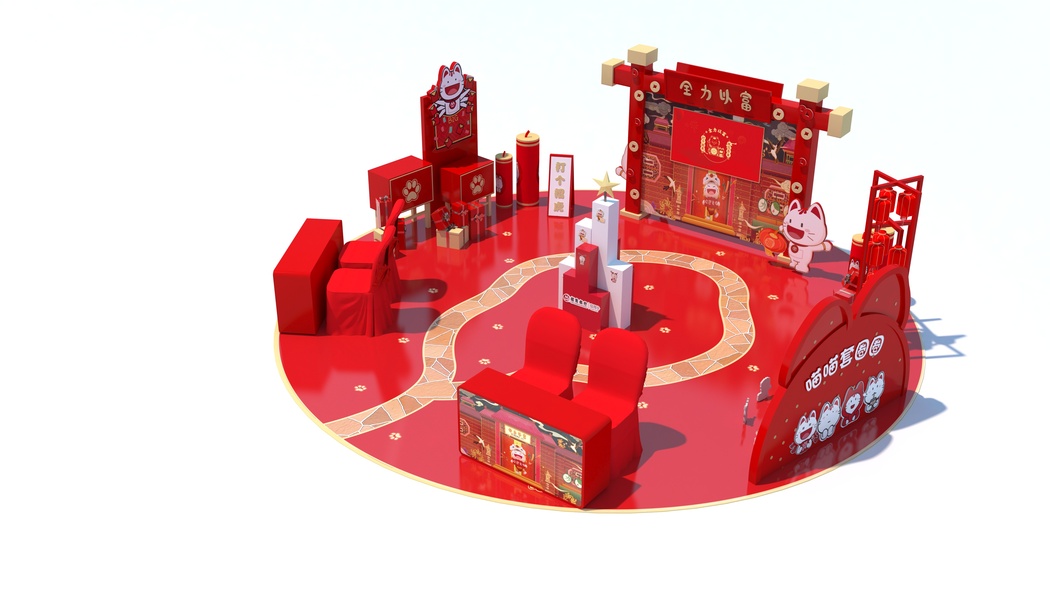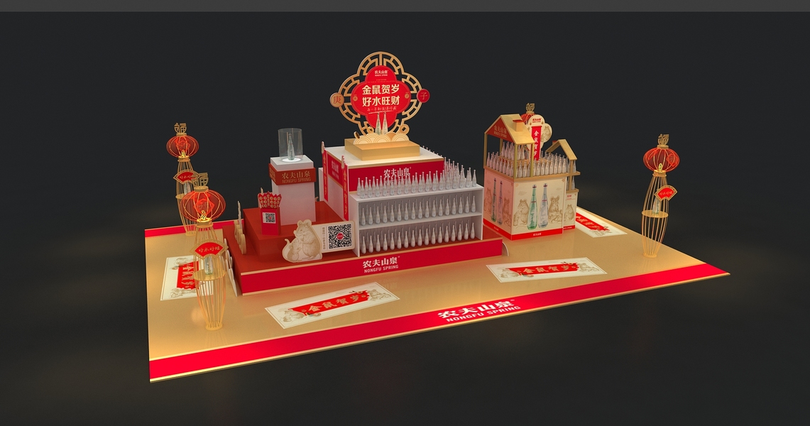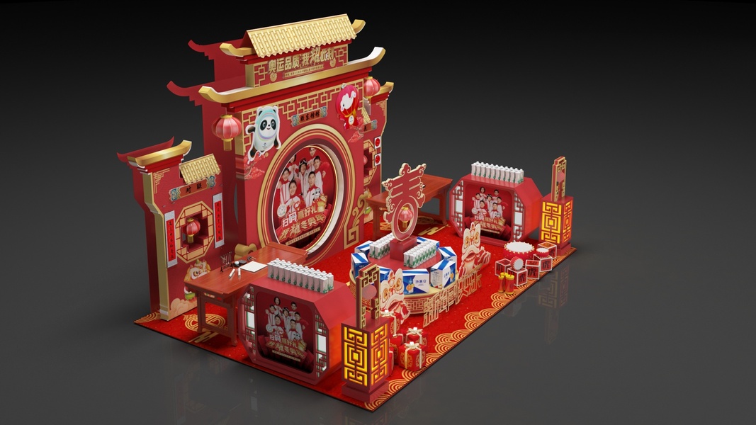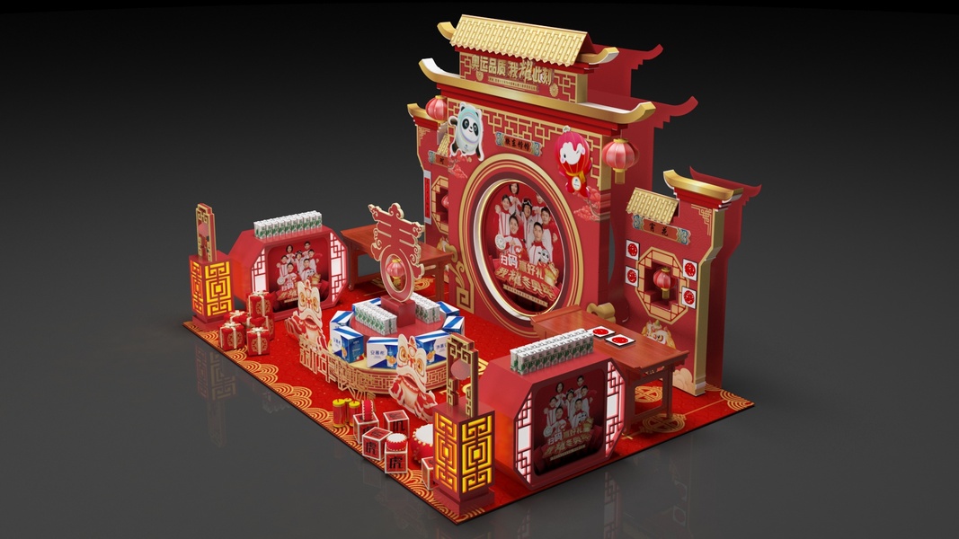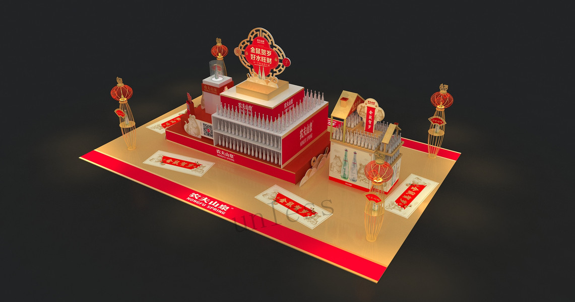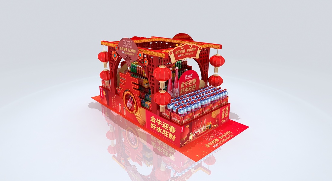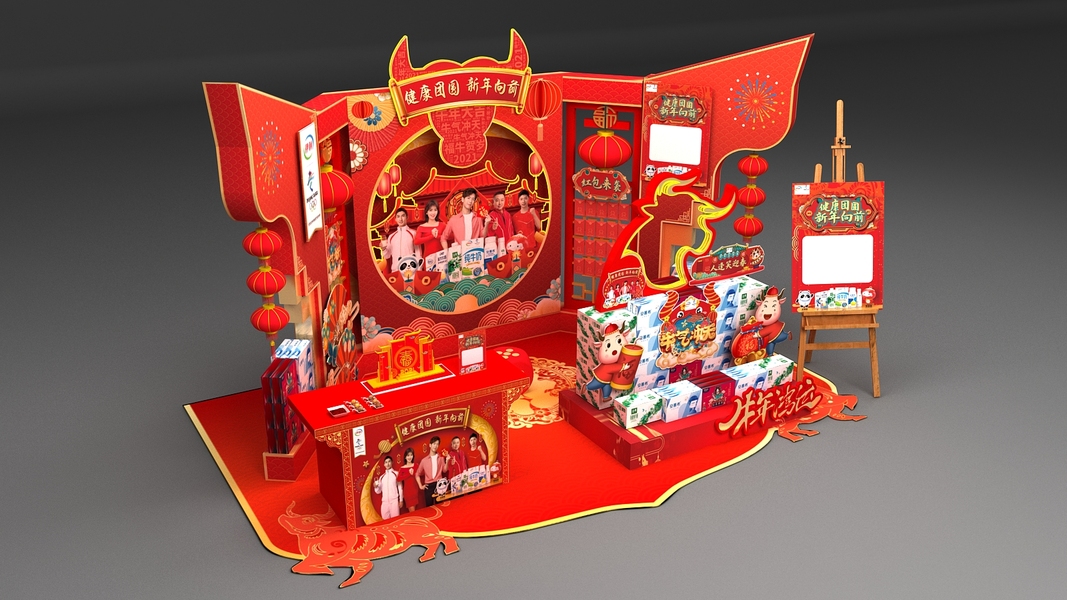 金牛迎新春,新年超市产品堆头设计3D效果图