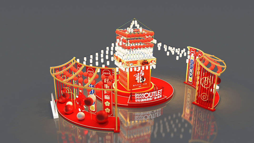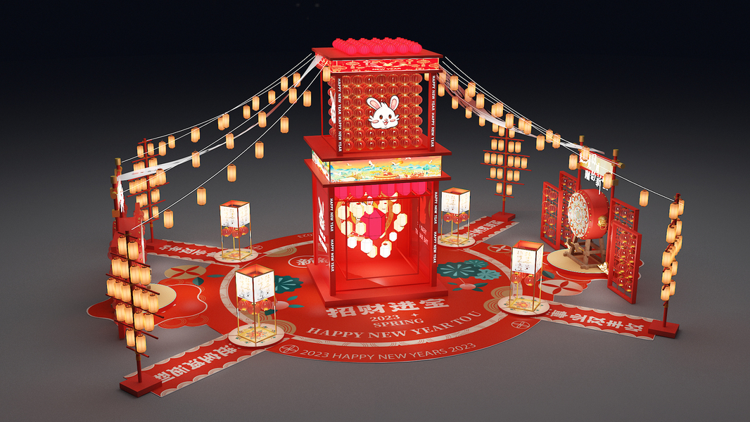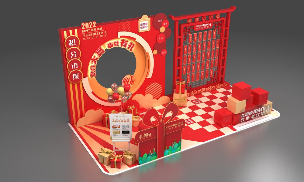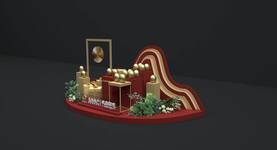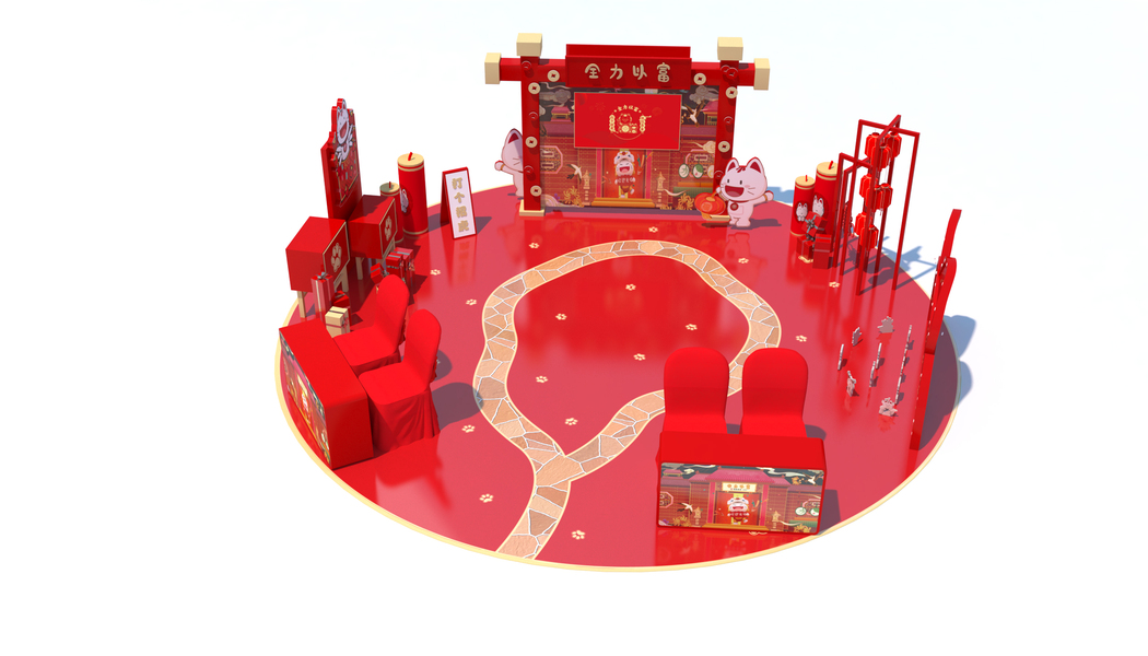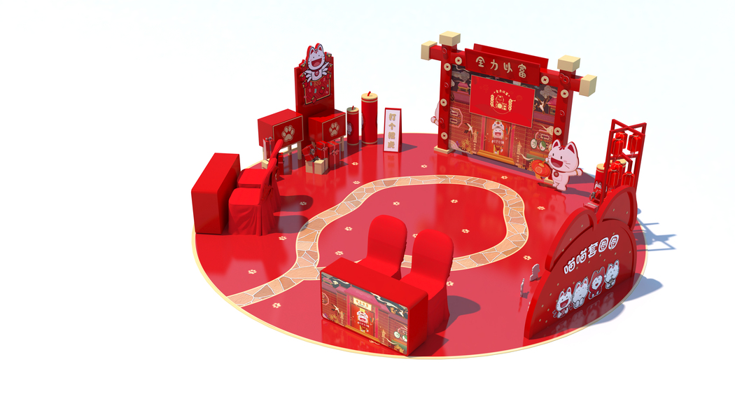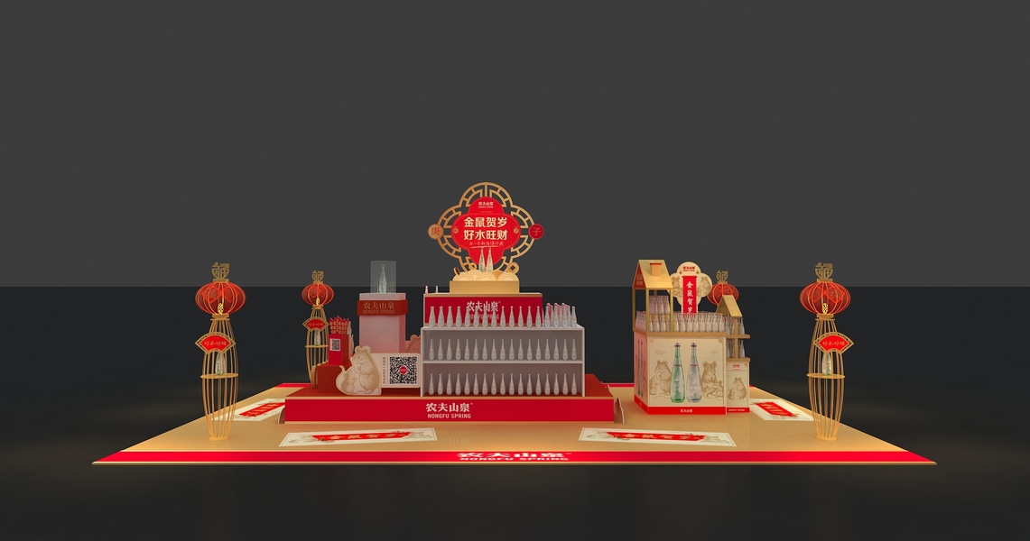 金牛迎新春,新年超市产品堆头设计3D效果图