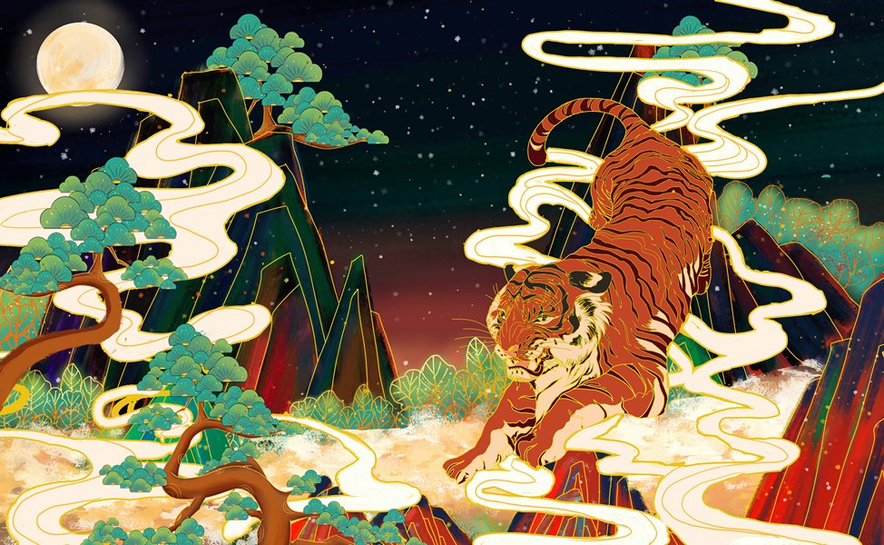 【国潮风】生肖插画(虎、猴、牛、狗、龙)