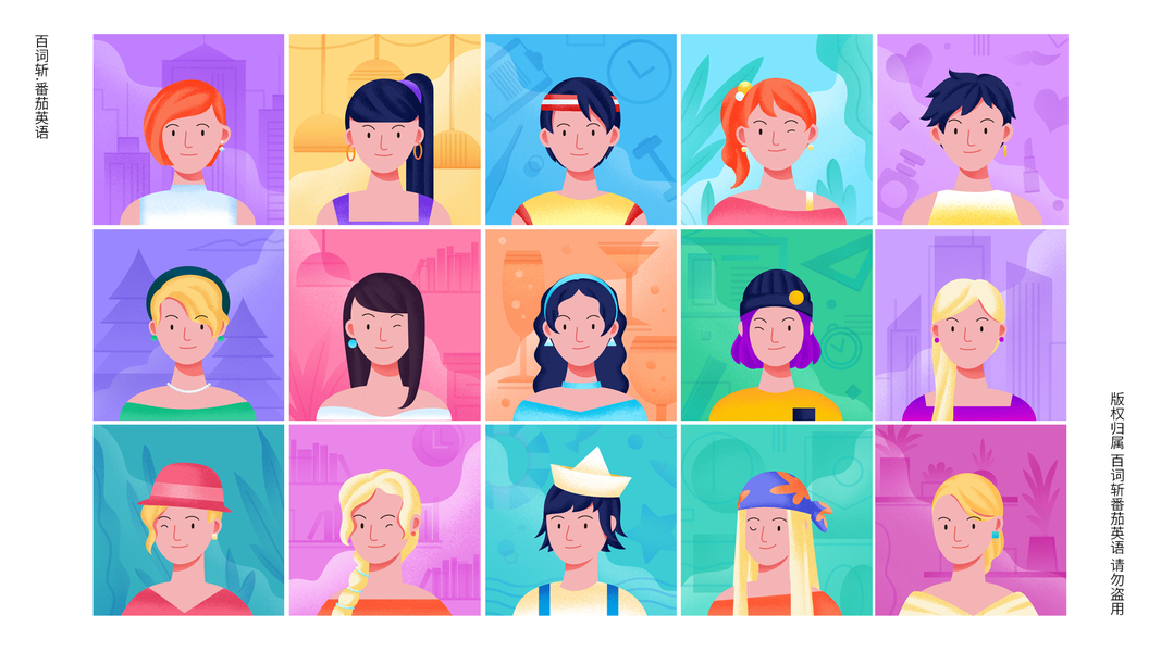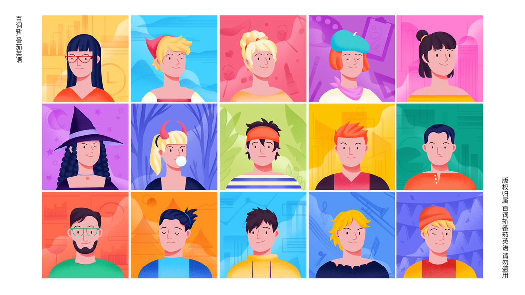 为百词斩-番茄英语 绘制的105位教师形象