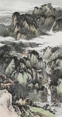原创彩墨新作《深云静晚天》易剑赋作品:138cm*68cm