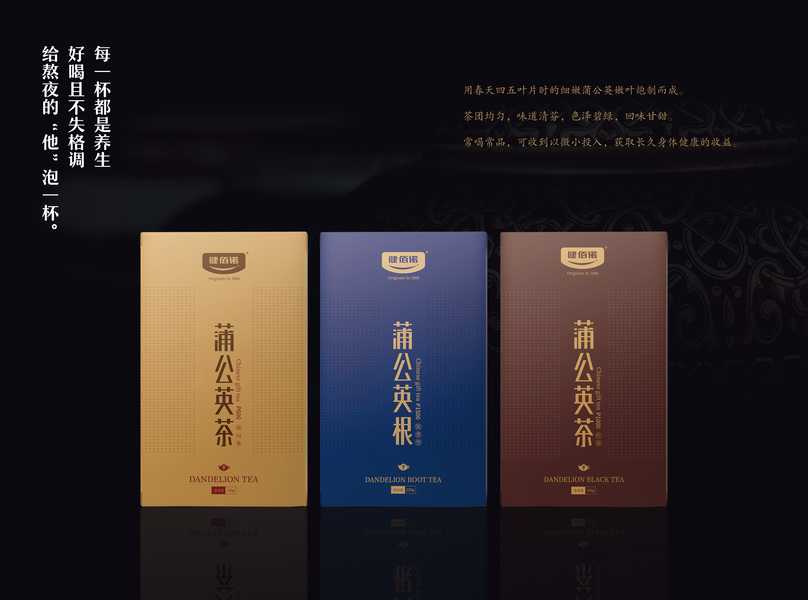 济宁健佰诺蒲公英茶系列品牌包装盒设计/宣传折页设计