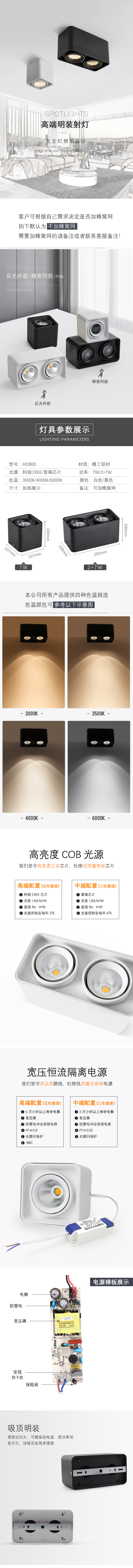 明装筒灯射灯双头斗胆灯家用过道无主灯照明带蜂窝网
