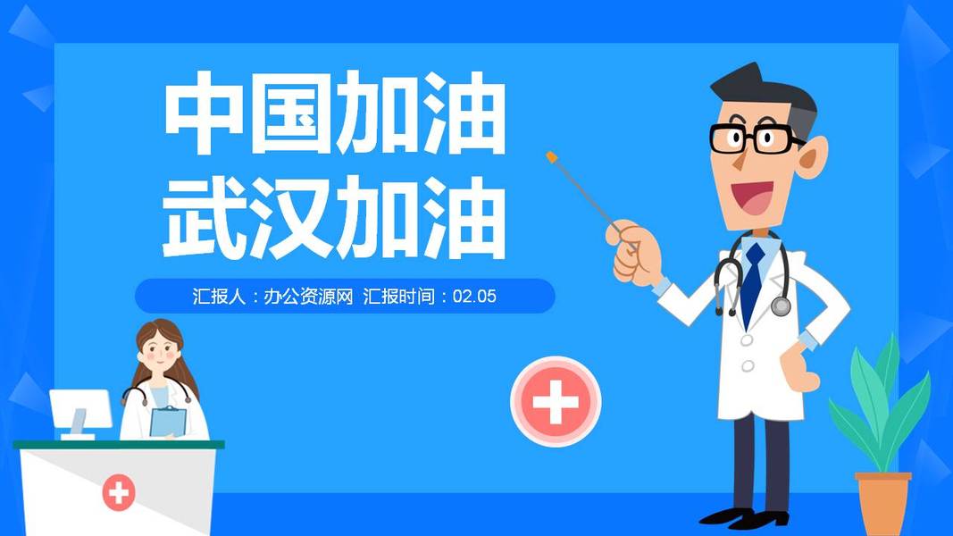 蓝色卡通风抗击新型冠状病毒肺炎疫情PPT模板