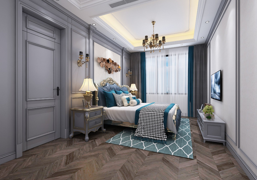 郑州翰林雅苑134平装修效果图现代轻奢美式风格太美了
