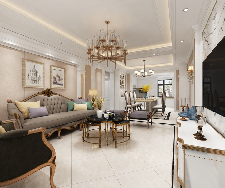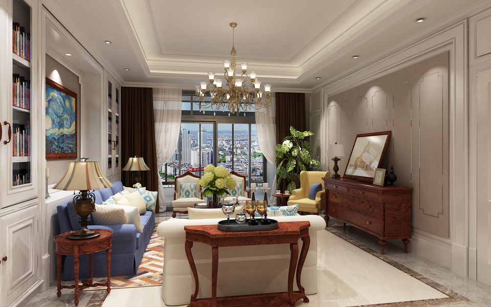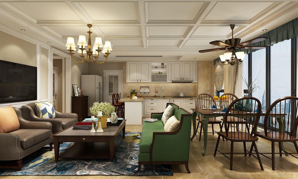济南万泰装饰海信君和170平美式风格装修设计案例