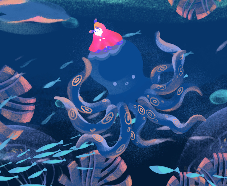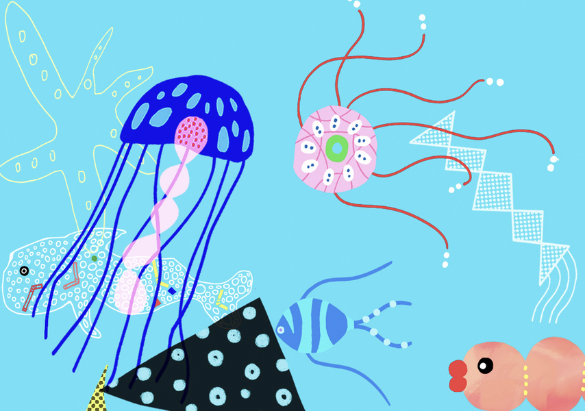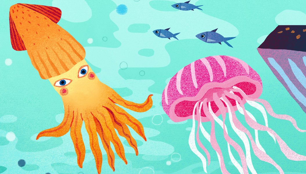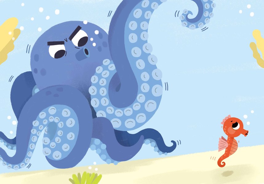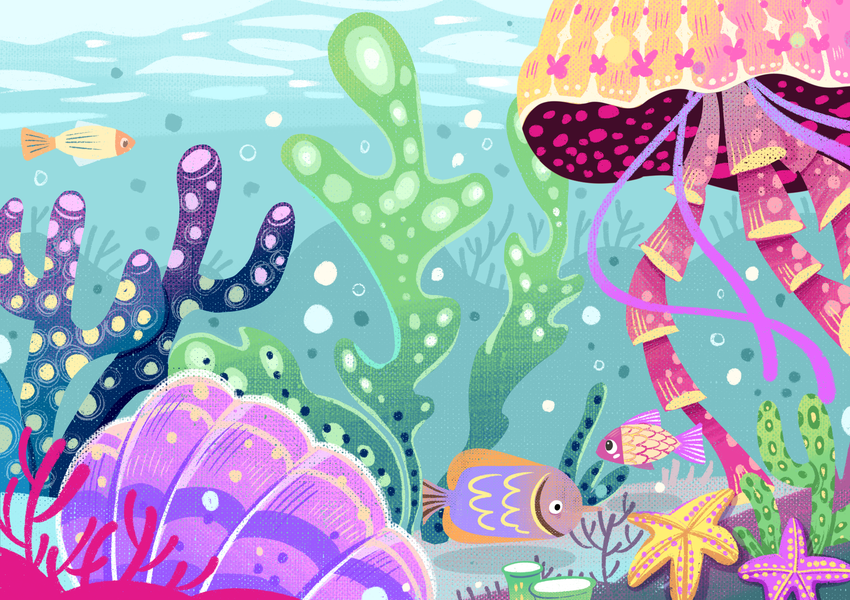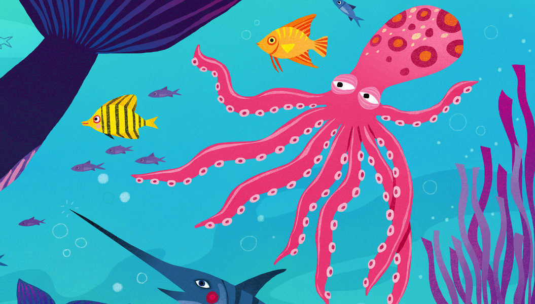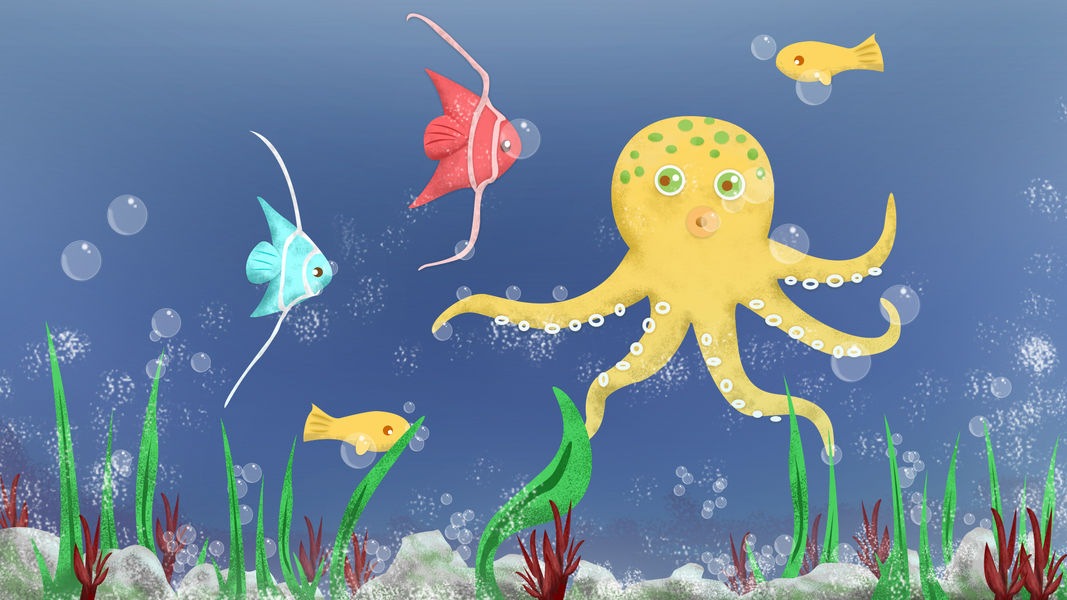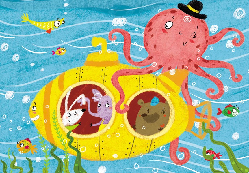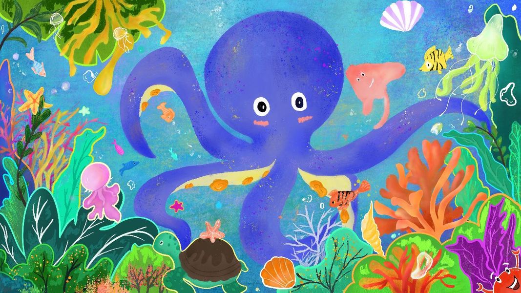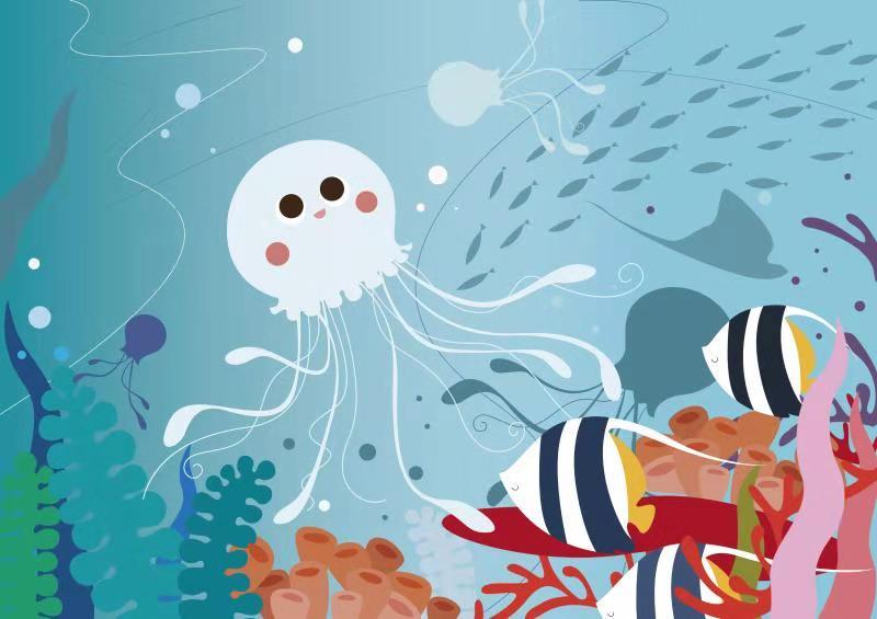 海洋主题拼图玩具插画-鲸鱼海豚海马章鱼水母海龟