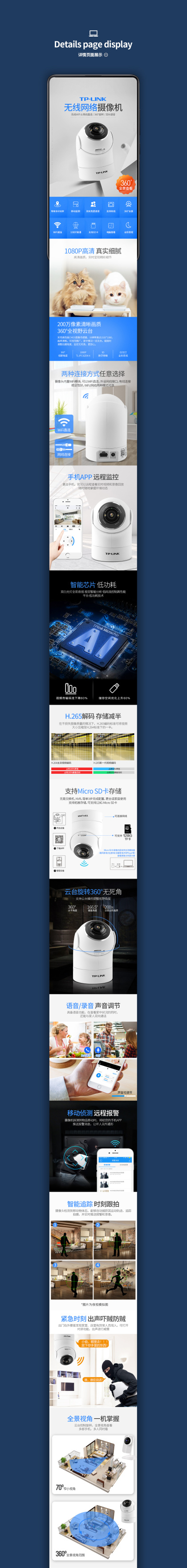 电商监控摄像头设备电子科技TPLINK详情页海报描述页