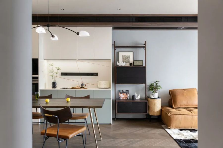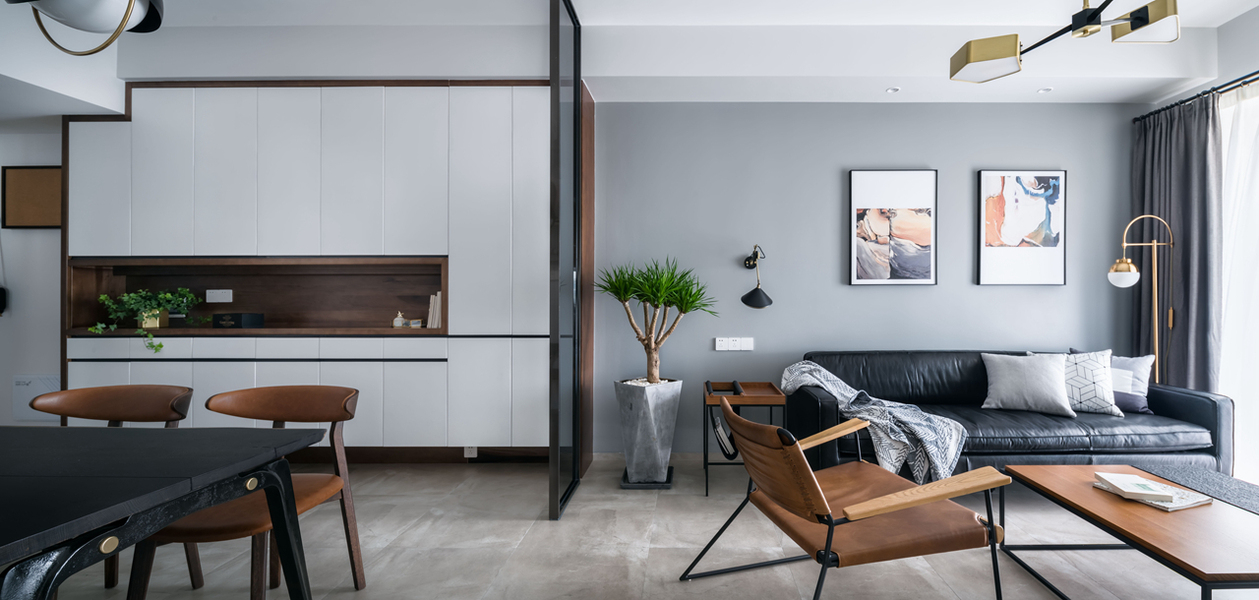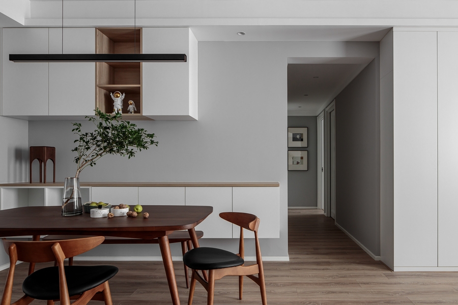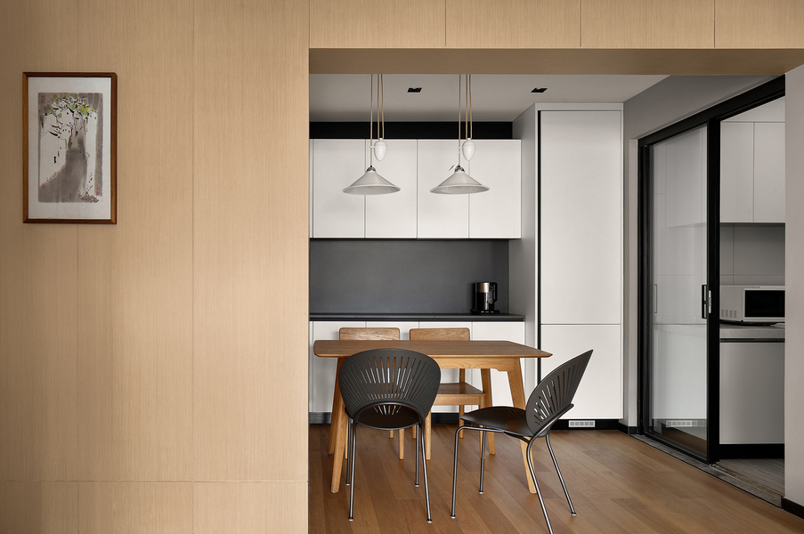 83平的简约风小户型,玄关、餐厅和厨房结合在一起