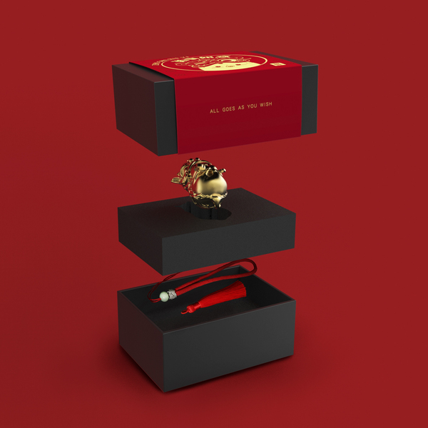 2019猪年诸事如意——瑞兽抱抱猪狮如意精铜镀金挂件