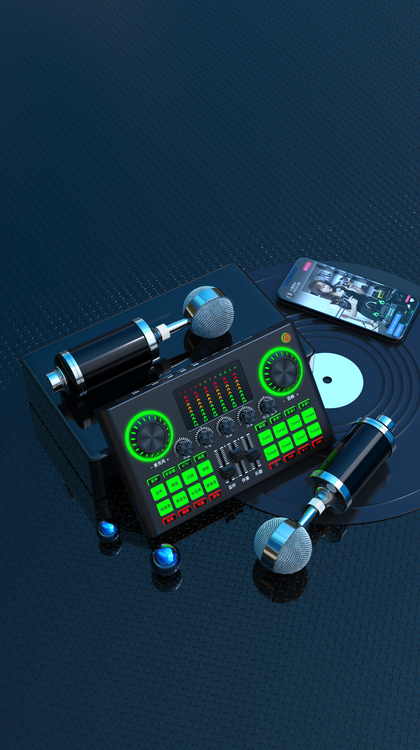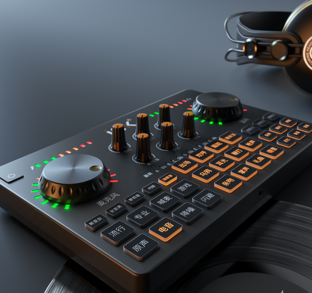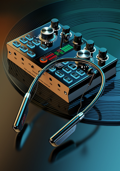 3C数码音频产品渲染 - 手机声卡、麦克风、头戴耳机