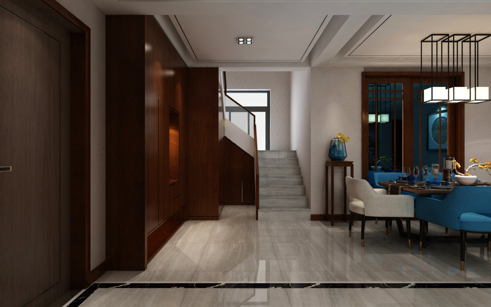融创金开融府联排别墅装修,新中式轻奢风设计效果图