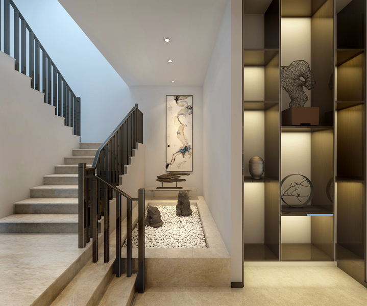 济南市市中区公园九里160平下复式新中式风格装修案例