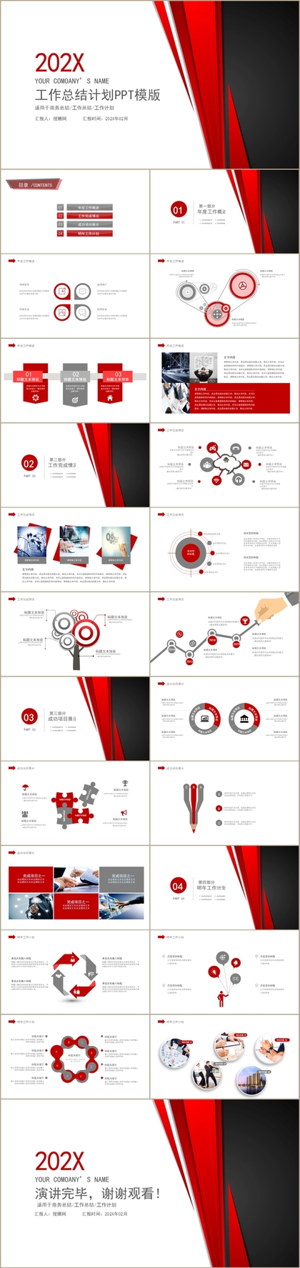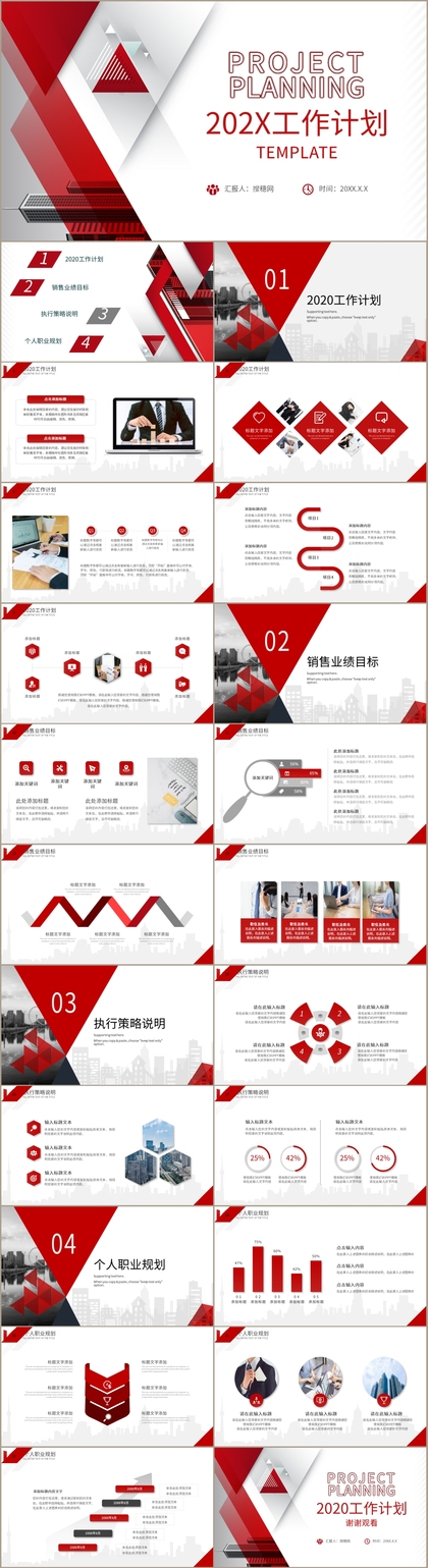 红色简约大气商务企业年度工作计划总结汇报PPT模板