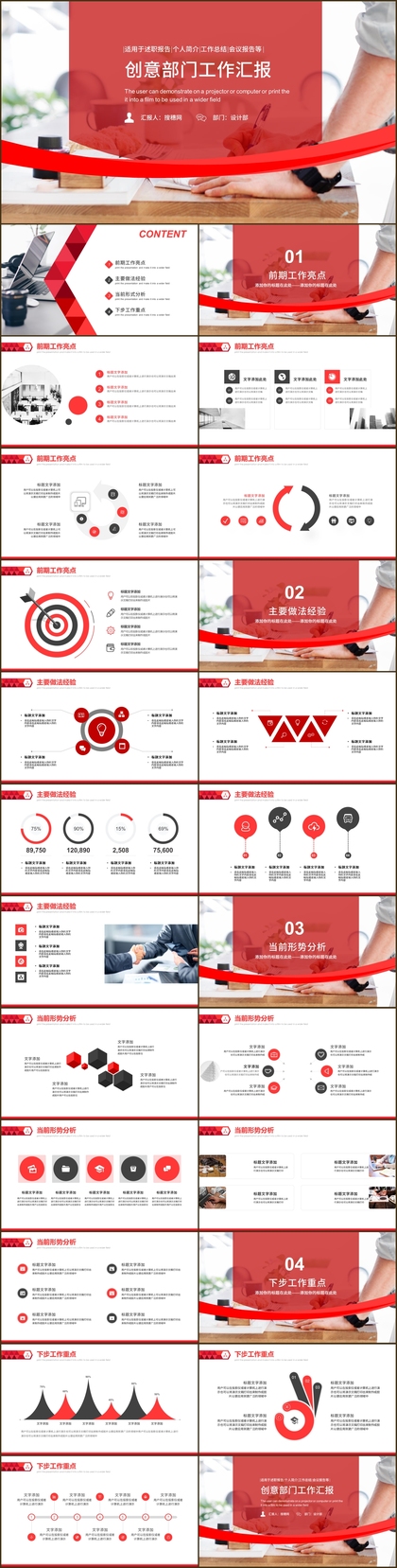 红色简洁商务风工作总结汇报办公通用PPT模板