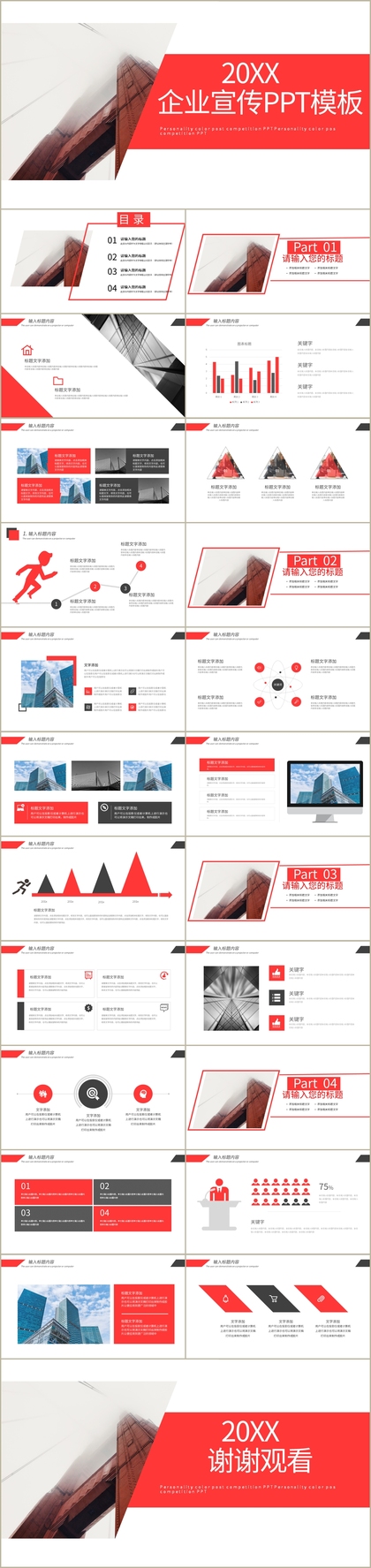 清晰红色简约大气公司简介企业宣传商务通用PPT模板