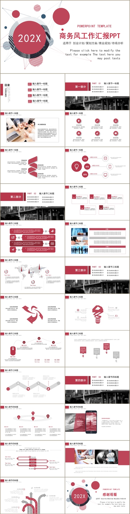 时尚红色商务通用工作总结计划会议报告PPT模板