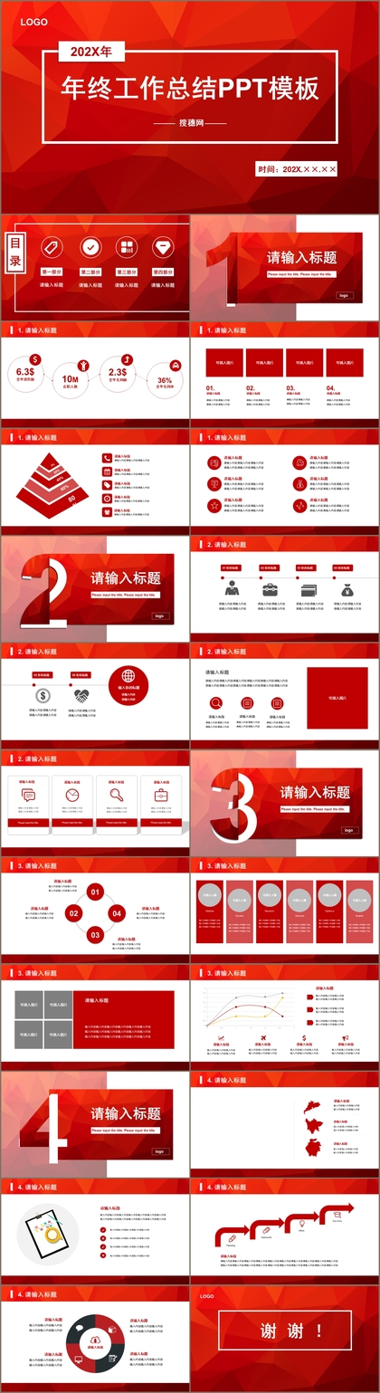 大气红色商务企业年终工作总结汇报新年计划PPT模板