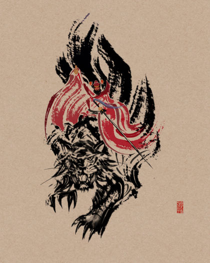 古代神话故事妖魔鬼怪-《破阵》卡牌插画