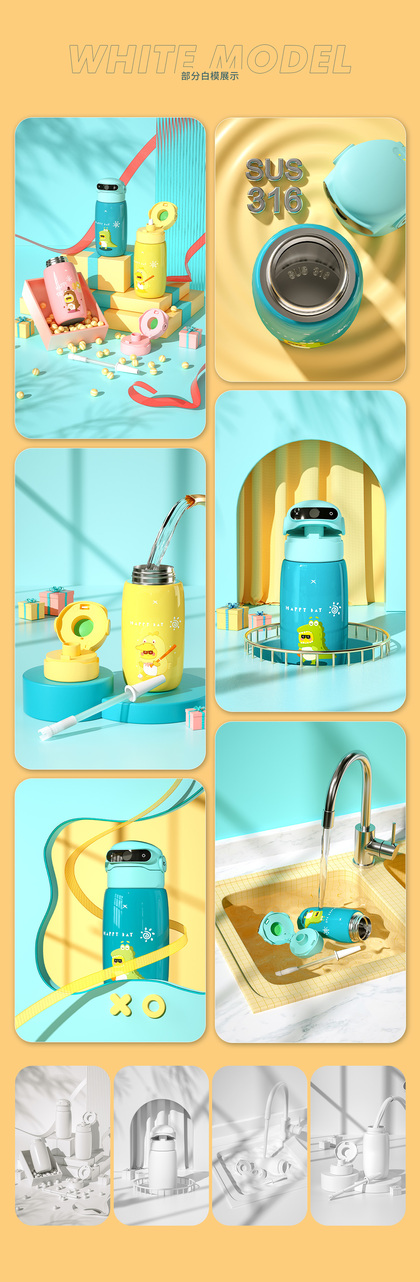 儿童指纹锁保温杯C4D建模渲染电商详情页