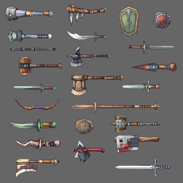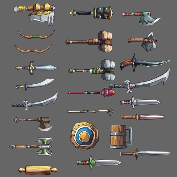【日常练习】游戏图标 (琵琶、剑、斧头、锤子、书)