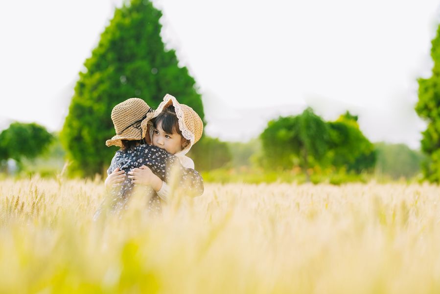 麦场女孩深色衬衫裙子秋天日落黄昏背影长发金发唯美