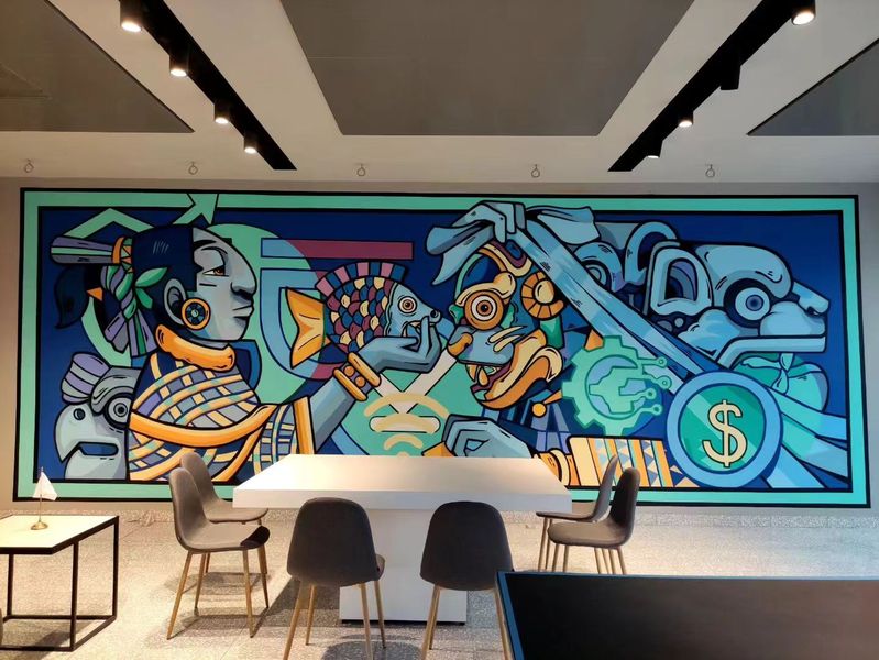 咖啡厅餐厅彩绘-互联网公司彩绘酒吧墙绘-墙绘浮雕培训
