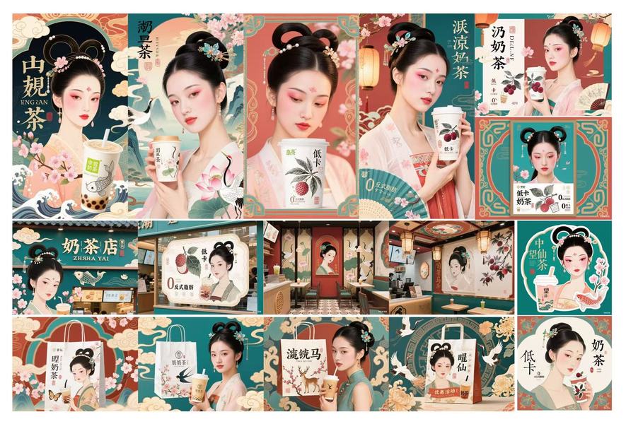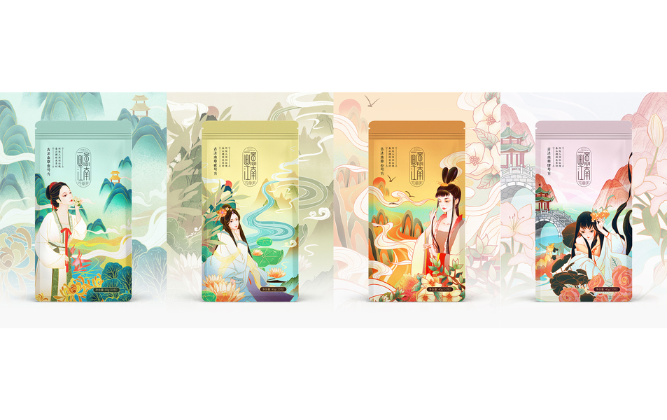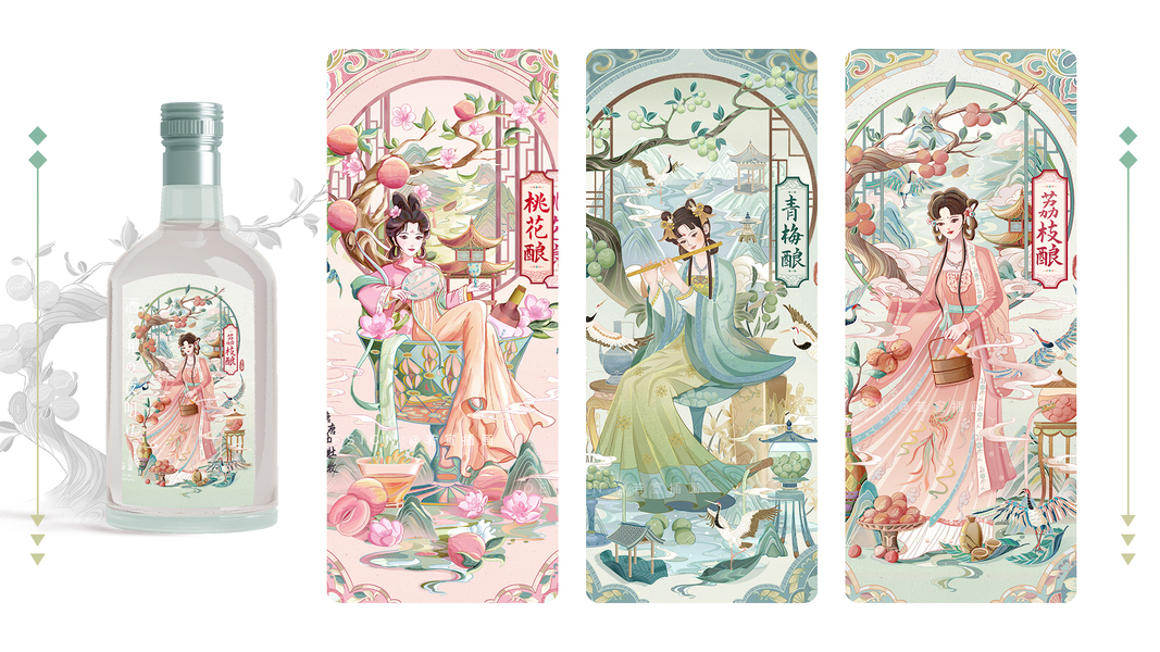 原创国潮古风人物 |果酒包装|蜜桃 青梅 荔枝|美食插画