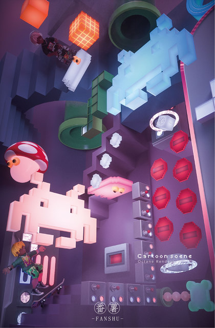 C4D动态学员幼稚园小班大佬-任天堂像素动态临摹
